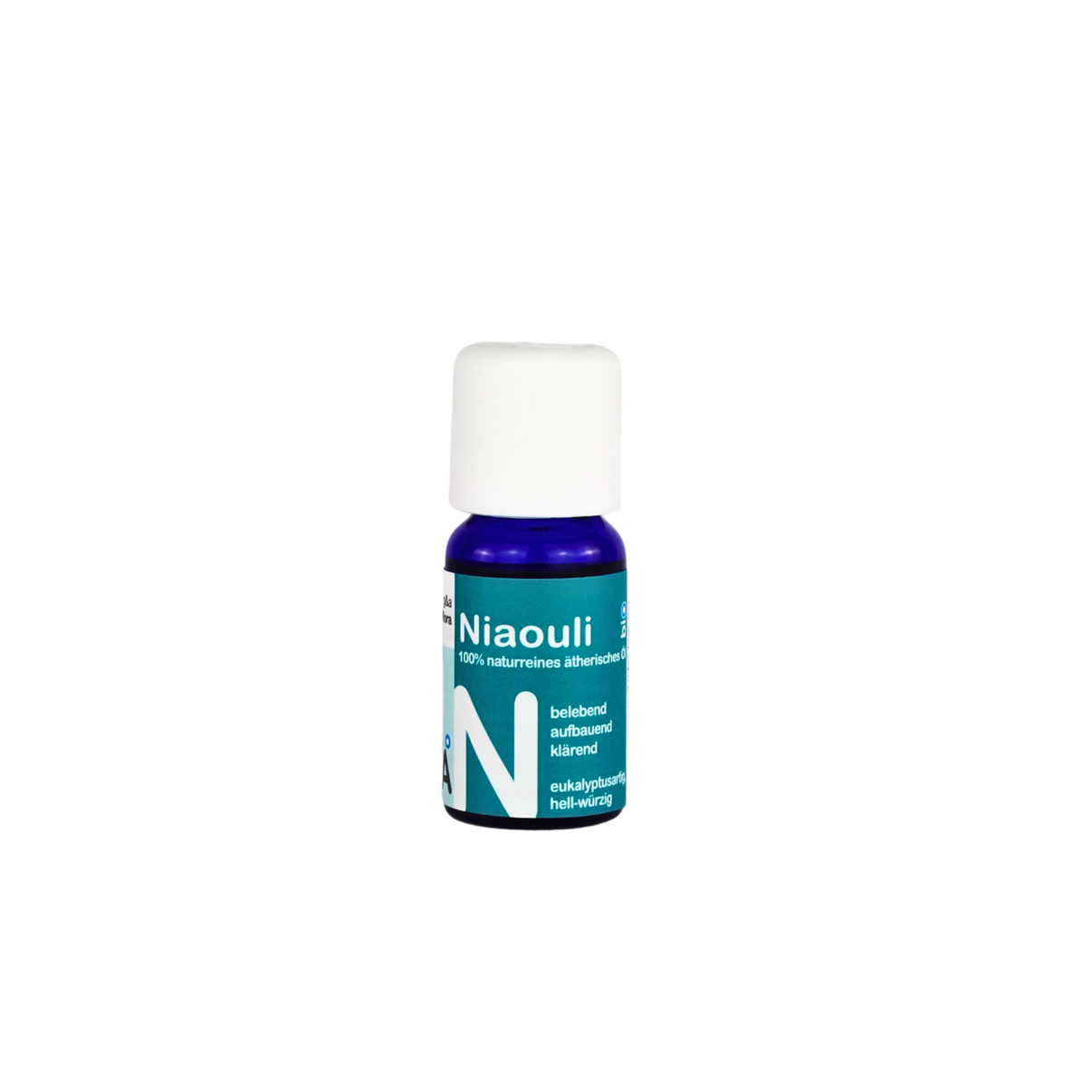 Das ätherische Öl von Niaouli löst sich sehr gut in Alkohol (1:1, 80% Ethanol), Pflanzenölen und anderen ätherischen Ölen. Ätherisches Niaouli-Öl ist nahezu unlöslich in Wasser. Hauptbestandteil mit bis zu 65% ist 1·8-Cineol. α-Terpineol, Pinen, Limonen und p-Cymol sind in geringeren Konzentrationen enthalten.